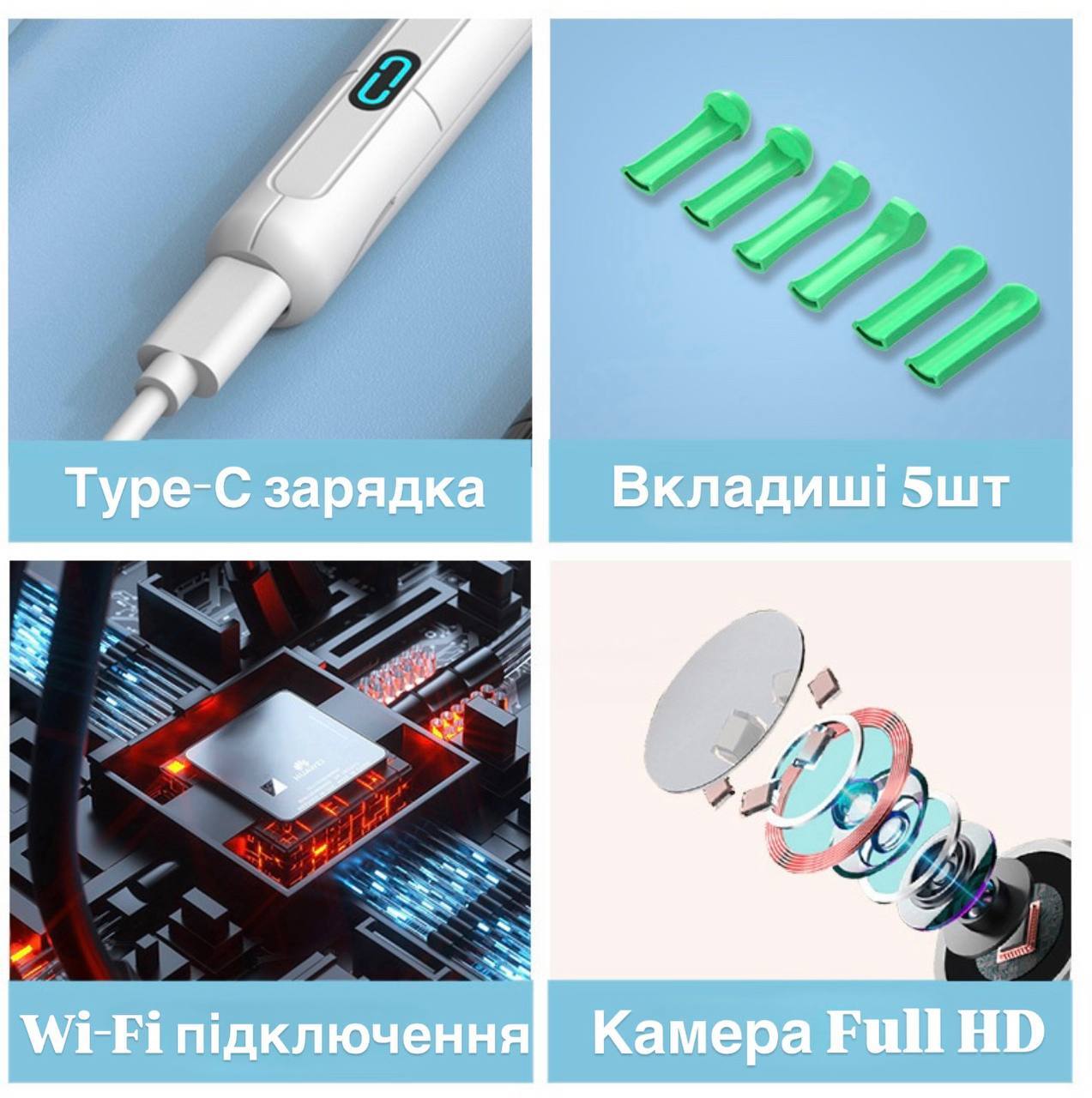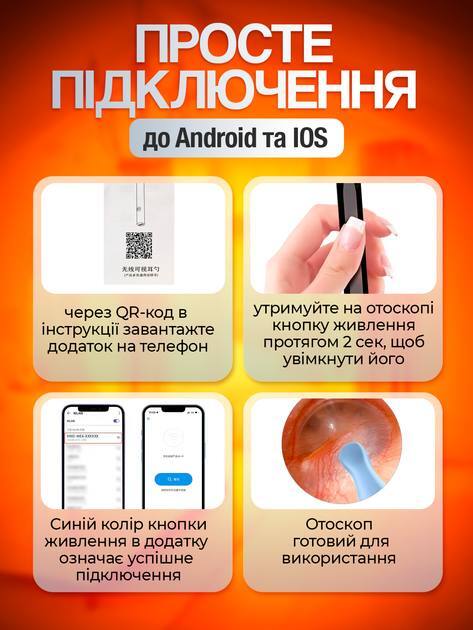 Електронна вухочистка підключається до смартфону через Wi-Fi і підходить як для Android, так і для iOS. Це робить її зручним та багатофункціональним пристроєм.