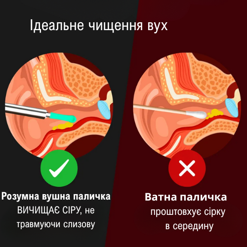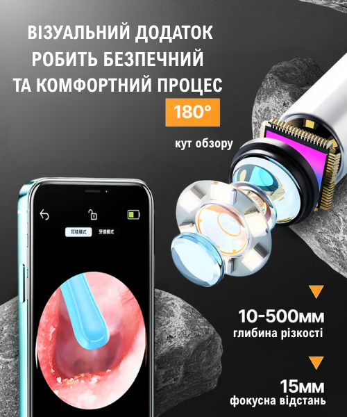 Це сучасний та безпечний пристрій для особистої гігієни, який забезпечує ефективне очищення вух, носа та інших важкодоступних місць. На відміну від традиційних ватних паличок, які можуть пошкодити вушний прохід, електронна вухочистка має вбудовану камеру із зображенням Ultra HD і кутом огляду 180 градусів.